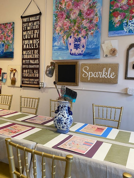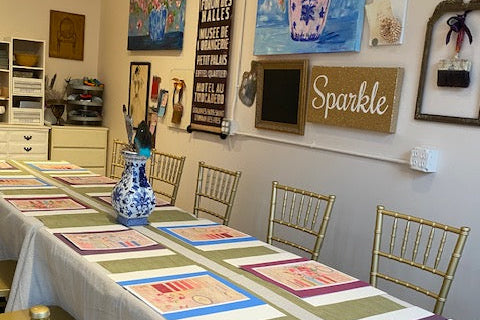 Option Two: Or you can work on a project that has been on pause in your creative space, you can work at "The Table" using the "workspace" tools and supplies provided, you bring the project to K.MARIE.