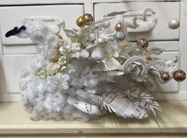 Join me and create this amazing swan that stands about 8” tall, you will create the base out of paper and then make her come to life with chenille and paper feathers — I will provide a bundle of vintage papered wire as part of the class fee—